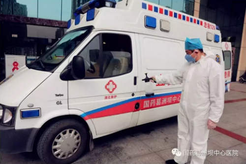 共產(chǎn)黨員邢原對救護(hù)車消毒處理