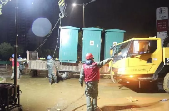 中國石化武漢知音大道加油站距離火神山醫(yī)院僅一路之隔。為了方便中建三局項(xiàng)目部的工人師傅們上廁所,加油站的職工特意建起一座流動廁所。