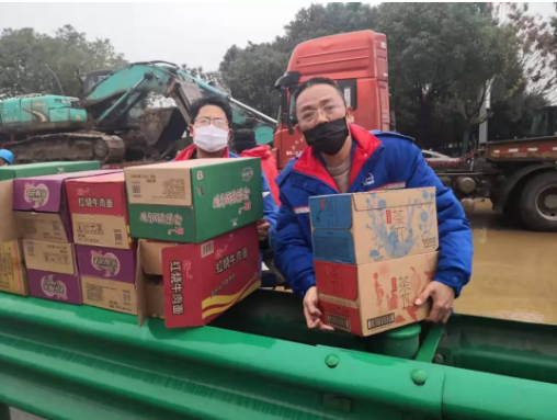 解決了如廁,建筑工人的飲食問題又接踵而至。為了支持火神山醫(yī)院建設(shè),各加油站紛紛拿出僅剩的庫存,一夜之間,59箱泡面、100箱卓瑪泉、50件茶飲料、鷗露紙、洗手液等物資全部備齊。加油站的兄弟們,一點(diǎn)點(diǎn)的將保供物資送進(jìn)了施工地點(diǎn)。