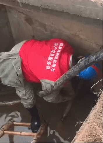 在雷神山醫(yī)院電纜敷設(shè)現(xiàn)場,供電員工冒著嚴(yán)寒鉆進(jìn)滿是積水的電纜溝;