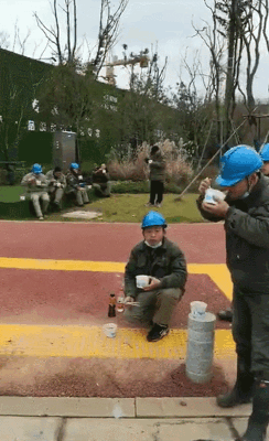 河南駐馬店的劉海龍師傅,今年沒有回家,自愿到工地來支援。他說自己雖是白班,但工地上沒有具體上班和下班的時間,有事情就要去做。“我今天的任務(wù)是看護(hù)這個修路用的定位旗,不能讓人碰倒。我在這里沒有認(rèn)識的人,我是自愿過來的。”