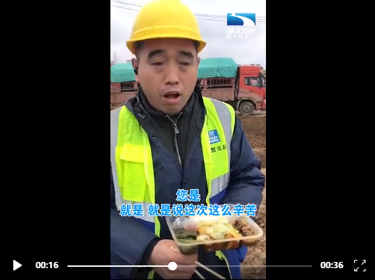 1月23日,得知醫(yī)院啟動建設(shè)的消息,中建三局41歲的牛合龍第一時間報(bào)了名:“雖然我只是個司機(jī),但我送物資也比別人快!”1998年,長江中下游特大洪水;2003年,非典肆虐神州大地;2008年,汶川地震,這已經(jīng)是他第四次參與國家重大搶險(xiǎn)抗災(zāi)任務(wù)。他說:“相信希望,是我們最強(qiáng)的力量!”