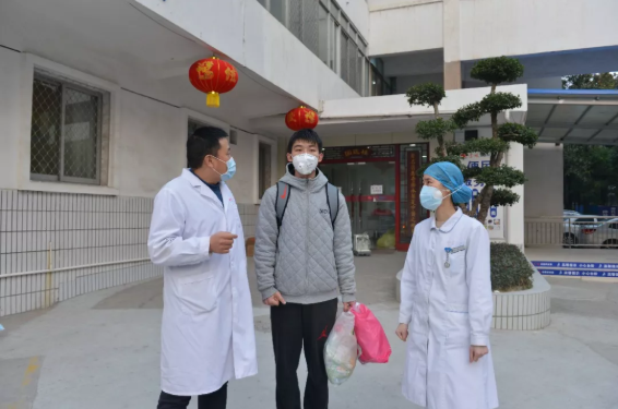 今天出院的兩例患者中,其中一位愉快地接受了我們的采訪。他是一位年輕的小伙子,是湖北省某高校體育專業(yè)的在校大學(xué)生。