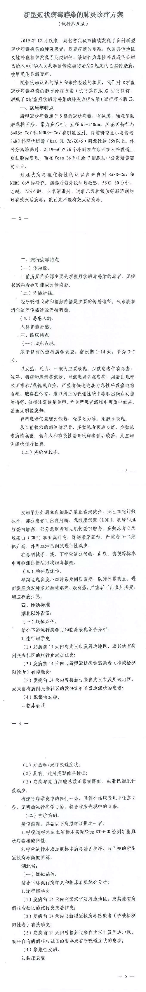 為應(yīng)對(duì)新型冠狀病毒感染病患增加,以及危重癥患者不斷增多的實(shí)際情況,2月2日下午相關(guān)部門(mén)召集權(quán)威專(zhuān)家開(kāi)展聯(lián)席會(huì)議,在《第四版新型冠狀病毒感染的肺炎診療方案》的基礎(chǔ)上修訂了第五版試行方案(以下簡(jiǎn)稱(chēng)“第五版方案”)。