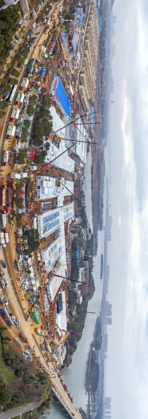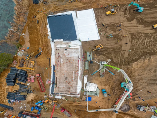 凌晨1點,中建三局迅速成立應急工程建設現(xiàn)場指揮部,明確組織架構(gòu)和責任人。現(xiàn)場施工主要分為三個階段進行,首先是場平和硬化,然后進行上部結(jié)構(gòu)施工,最后是機電設施安裝。