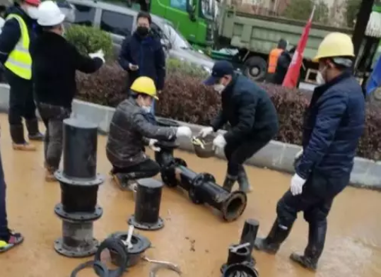 新興際華新興鑄管武漢公司將240米球墨鑄鐵管及108種管件配備送至工地,并開始管道安裝作業(yè)。