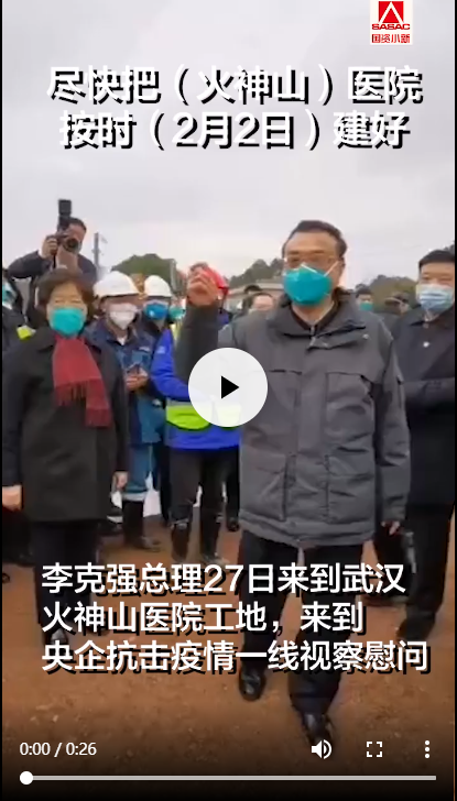 李克強總理來到火神山醫(yī)院,當總理問現(xiàn)場工作人員能完成任務嗎?現(xiàn)場所有人齊呼:能!??!保證完成任務!