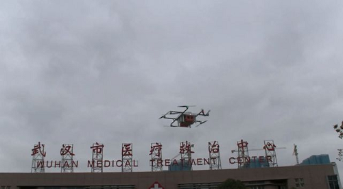 首架“疫情區(qū)應(yīng)急作業(yè)”無(wú)人機(jī)降落金銀潭醫(yī)院投送防疫物資