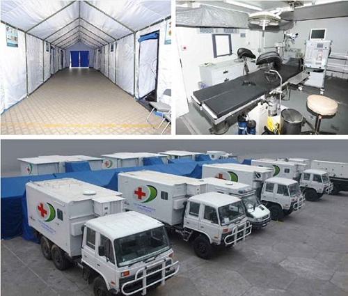“移動(dòng)醫(yī)院”裝備共涉及手術(shù)車、醫(yī)技車、通訊指揮車、水電油保障車、生活車、宿營(yíng)車等近10種特種車輛,展開后就相當(dāng)于一所二級(jí)甲等綜合醫(yī)院,機(jī)動(dòng)性好、模塊化組合、展開部署快速、救治功能范圍廣等,能夠完成手術(shù)、急診、急救任務(wù),同時(shí)可以保障救援人員的基本生活所需。