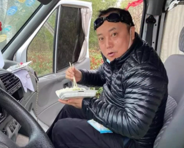 昔日吃貫了的一天三餐,現(xiàn)在變成了一天一餐,為了不影響防疫,他們唯一的一餐盒飯,都是拿到遠(yuǎn)離居民區(qū)的公路邊吃。平時(shí),則用車(chē)上備的零食充饑。