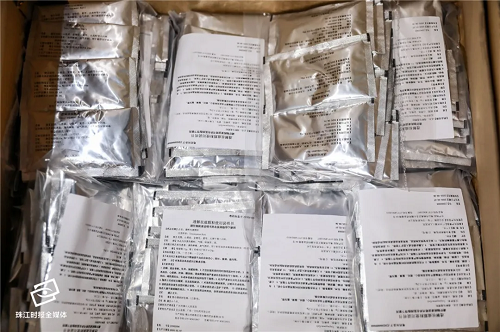 裝箱待發(fā)的“肺炎1號方”制劑。珠江時報記者方智恒攝