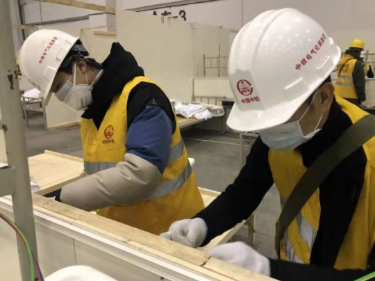 2月16日上午,中國(guó)電建所屬水電四局迅速集結(jié)在漢軌道公司武漢地鐵11號(hào)線、12號(hào)線,東西湖雨污分流項(xiàng)目、清水入江四個(gè)項(xiàng)目的47名員工,組成援建小分隊(duì),火速馳援武漢江岸區(qū)長(zhǎng)江新城方艙醫(yī)院施工。根據(jù)現(xiàn)場(chǎng)需要安排,他們主要負(fù)責(zé)了長(zhǎng)江新城方艙醫(yī)院可容納96個(gè)床位的8號(hào)艙的照明等工作。長(zhǎng)江新城方艙醫(yī)院由20個(gè)1188平方米的廠房倉(cāng)庫改造而成,建成后可容納3500個(gè)床位。