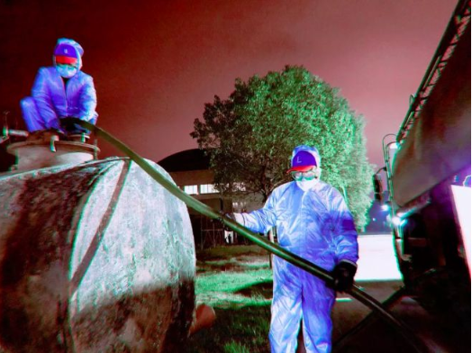晚上7點(diǎn),兩支黨員突擊隊(duì)先后抵達(dá)卸油點(diǎn),將10000升柴油緊急馳援到黃陂一中體育館方艙醫(yī)院。