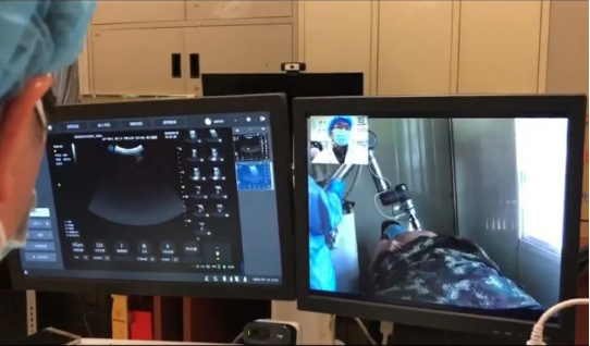 除了保障各類供應(yīng)穩(wěn)定暢通,方艙醫(yī)院還用上了新科技。2月18日下午15點(diǎn)15分,遠(yuǎn)在700公里之外的浙江省人民醫(yī)院遠(yuǎn)程超聲波醫(yī)學(xué)中心的專家,利用中國(guó)電信5G技術(shù),通過手柄遠(yuǎn)程控制黃陂體育館方艙醫(yī)院的超聲機(jī)器人為患者進(jìn)行超聲檢查。這是新冠肺炎疫情發(fā)生以來,首次運(yùn)用5G遠(yuǎn)程診療技術(shù)為新冠患者實(shí)施救治。