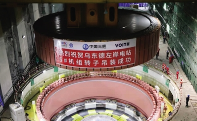 近日,由中國(guó)能建葛洲壩集團(tuán)承擔(dān)安裝施工任務(wù)的烏東德水電站左岸地下電站5號(hào)機(jī)組轉(zhuǎn)子成功吊裝。資料照片