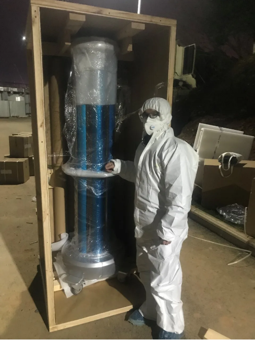 為了能讓這個(gè)“重型武器”盡快發(fā)揮作用,團(tuán)隊(duì)成員穿上兩層防護(hù)服把設(shè)備運(yùn)送到紅區(qū)。沒(méi)有猶豫,沒(méi)有近距離面對(duì)新冠病毒的恐懼,只有一心保障抗疫前線的責(zé)任和使命感。紫外線機(jī)器人設(shè)備有一人多高,他們小心翼翼地拆卸、組裝、調(diào)試,而身旁經(jīng)過(guò)的就是一批正在轉(zhuǎn)運(yùn)的重癥病人。憑借專業(yè)高效的工作作風(fēng)和不畏艱險(xiǎn)的團(tuán)隊(duì)精神,團(tuán)隊(duì)成員得到了院方的高度贊譽(yù)。