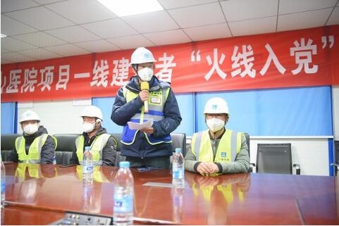 2月2日,中建三局火神山醫(yī)院項(xiàng)目現(xiàn)場(chǎng)指揮部臨時(shí)黨委研究并報(bào)中建三局黨委,同意金暉、潘吉建、張克強(qiáng)等8名同志“火線入黨”?,F(xiàn)場(chǎng),金暉作為預(yù)備黨員代表表態(tài):“加入中國(guó)共產(chǎn)黨是一份光榮,更是一份責(zé)任,我們?cè)竿蠹乙坏溃煌跣?,不?jì)回報(bào),逆風(fēng)而行。”工程建設(shè)爭(zhēng)分奪秒,全員都投入在施工一線,入黨儀式后,預(yù)備黨員立刻回到各自崗位,為沖刺項(xiàng)目交付節(jié)點(diǎn)全力拼搏,終于保證醫(yī)院如期交付投用。