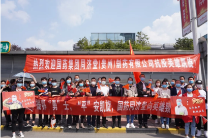 白衣執(zhí)甲,逆行出征。春暖花開,平安歸來。3月26日下午,最后一批馳援湖北的貴州醫(yī)療隊返程,387名隊員帶著鄂州人民的不舍與感激,搭乘專機(jī)抵達(dá)貴陽龍洞堡機(jī)場,迎來了家鄉(xiāng)同胞的熱情歡迎和深深敬意。凱旋的隊伍里有我們同濟(jì)堂制藥的兩位英雄——覃方勇、付守平。國藥集團(tuán)同濟(jì)堂制藥黨委書記、總經(jīng)理朱鶴率公司經(jīng)營班子成員、各黨支部代表、員工代表前往機(jī)場迎接。