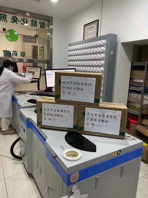 國藥集團下屬廣東一方配藥中心人員加班為金銀潭醫(yī)院調配防治處方。