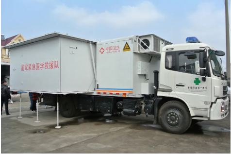 中國航天科工“移動醫(yī)院”裝備涵蓋手術(shù)車、醫(yī)技車、通訊指揮車、水電油保障車、生活車、宿營車等近10種特種車輛,展開后相當(dāng)于一所二級甲等綜合醫(yī)院,具有機(jī)動性好、模塊化組合、展開部署快速、救治功能范圍廣等特征,能夠完成手術(shù)、急診、急救任務(wù),同時可以保障救援工作人員的基本生活所需。