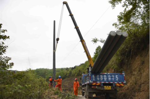 在貴州紫云縣松山街道同心村,電力施工人員全力加速建設(shè),讓村民早日用上安全電、舒心電。陳娟 攝