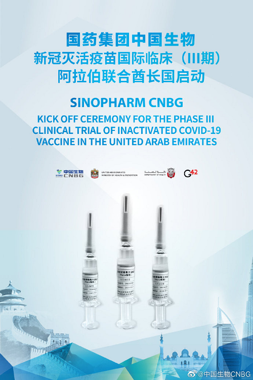 6月23日晚間國藥集團中國生物宣布,全球首個新冠滅活疫苗國際臨床(Ⅲ期)試驗已正式在阿聯(lián)酋啟動。