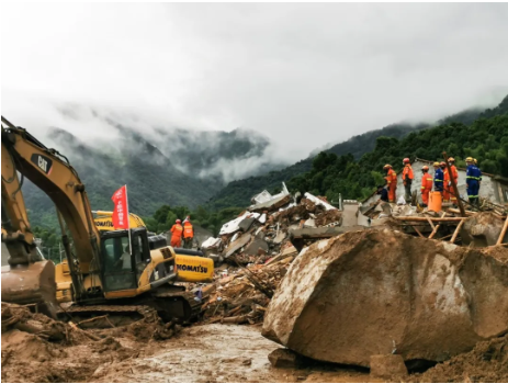 塌方現(xiàn)場危房拆除和消殺工作正在進(jìn)行