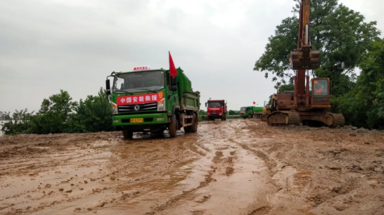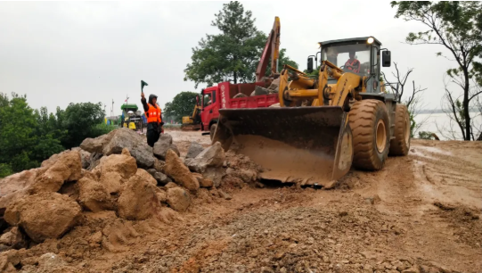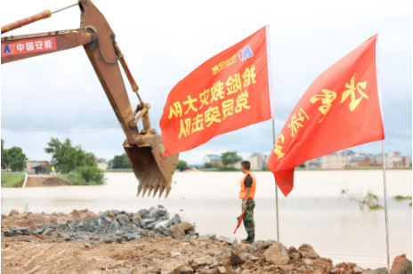 在安徽省蕪湖,中國鐵建中鐵十四局項(xiàng)目部在5分鐘內(nèi)集結(jié)8名黨員和12名一線員工,成立黨員突擊隊(duì),兵分兩路趕赴長江第一道防線現(xiàn)場,為抗洪救災(zāi)拉去土方30車。6臺挖機(jī),2臺后八輪,一線勞務(wù)工人50名,趕赴第二道防線現(xiàn)場抗洪搶險。