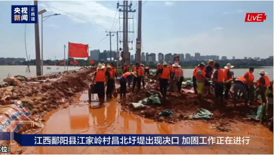 連日來,位于江西省東北部、鄱陽湖東岸的鄱陽縣遭受持續(xù)強(qiáng)降雨襲擊,近十天平均降雨量高達(dá)324.4毫米。受此影響,鄱陽湖水系昌江流域水位迅猛上漲,7月8日20時35分左右,鄱陽縣問桂道圩堤發(fā)生漫決,圩決口長127m。