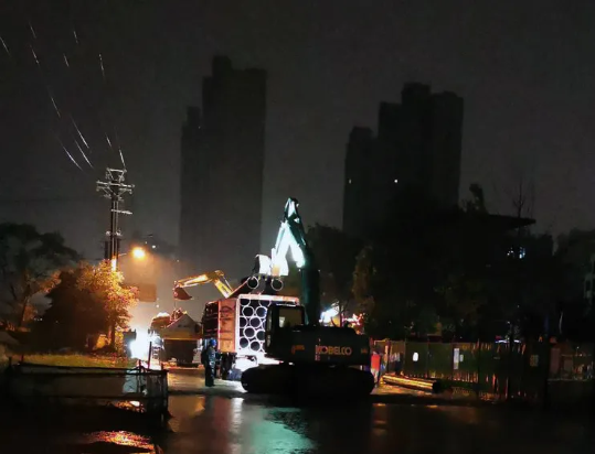 連續(xù)一周的強(qiáng)降雨致使城區(qū)港道積水,市民出行受阻,中國能建南方建設(shè)武穴項(xiàng)目部安排5臺挖機(jī)、15名施工人員配合市防汛指揮部安裝臨時PE管,通過增壓泵將城區(qū)內(nèi)積水逐步排出。經(jīng)過兩天兩夜的堅(jiān)守,7月9日,橫貫城區(qū)、長江的排澇PE管安裝完畢,城區(qū)內(nèi)積水得以緩解。