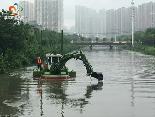 連續(xù)的強(qiáng)降雨也導(dǎo)致武漢市東湖水位上漲,為了及時抽排湖水,中國交建中交疏浚研究中心“武航一號”兩棲式環(huán)保疏浚船被緊急調(diào)往抗洪一線,清淤港渠,提升過水能力。實(shí)施清淤后,港渠過水流量可以達(dá)到每秒90立方米,有效提升東湖的泄洪能力。