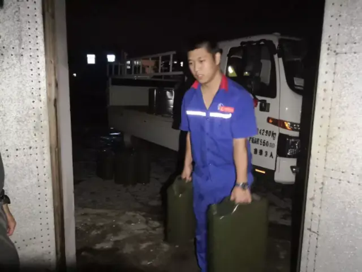 九江廬山石油隘口加油站工作人員桂駿為廬山市沙湖山防汛指揮緊急灌桶1140升。