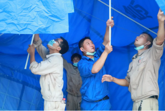 7月8日下午5點(diǎn),中國建筑旗下中建科工華中大區(qū)接到緊急任務(wù),赴消泗鄉(xiāng)搭建抗險救災(zāi)帳篷,為武漢市做好防汛排險和群眾轉(zhuǎn)移安置工作提供保障。