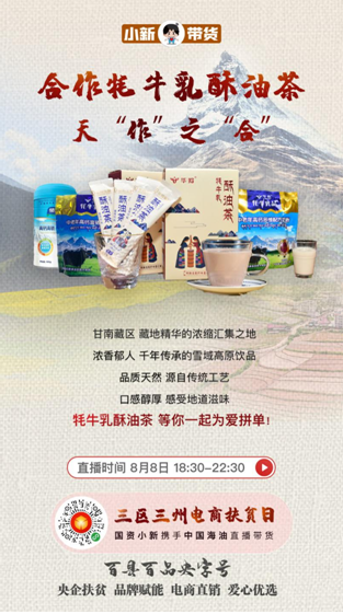 “百縣百品央字號(hào)”暨“小新帶貨”融媒體扶貧行動(dòng)已經(jīng)成功舉辦12場(chǎng),而本場(chǎng)是首次主題專場(chǎng)活動(dòng),聚焦8家中央企業(yè)在“三區(qū)三州”的8個(gè)定點(diǎn)扶貧縣,旨在幫助“三區(qū)三州”貧困地區(qū)打開產(chǎn)品銷路、推廣特色品牌,同時(shí)講述中央企業(yè)定點(diǎn)扶貧的精準(zhǔn)舉措和動(dòng)人故事。