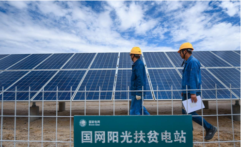 國網(wǎng)青海電力工作人員在國家電網(wǎng)捐贈(zèng)的瑪多10兆瓦易地扶貧光伏電站內(nèi)巡視設(shè)備