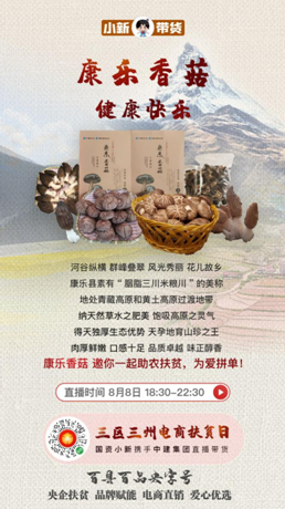 2013年以來,中建集團(tuán)下大氣力定點(diǎn)幫扶甘肅省康樂縣、卓尼縣、康縣,出資16億元認(rèn)購央企扶貧基金,同時(shí)充分發(fā)揮建筑行業(yè)的特點(diǎn)和資源稟賦優(yōu)勢(shì),實(shí)施“全產(chǎn)業(yè)鏈推動(dòng)”打造了2個(gè)旅游產(chǎn)業(yè)扶貧示范項(xiàng)目,通過“三變改革”帶動(dòng)3093名貧困群眾脫貧致富。本場(chǎng)直播,中建集團(tuán)將他們?cè)诟拭C臨夏州康樂縣產(chǎn)業(yè)扶貧的成果——康樂香菇帶到了直播間。康樂縣地處青藏高原和黃土高原過渡地帶,這里特殊的氣溫、日照和較大的溫差非常適合香菇生長,康樂香菇集營養(yǎng)價(jià)值、藥用價(jià)值于一身,肉厚鮮嫩。
