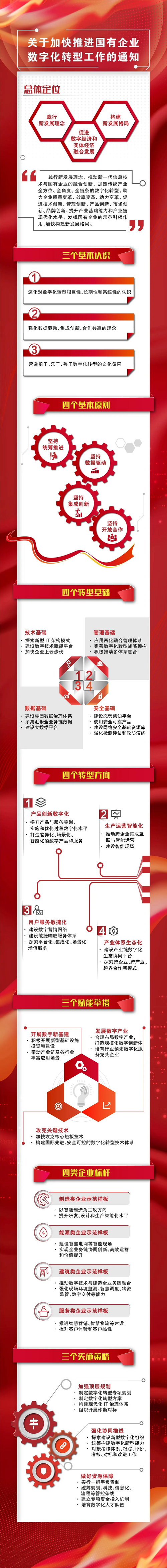 近日,國務(wù)院國資委正式印發(fā)《關(guān)于加快推進(jìn)國有企業(yè)數(shù)字化轉(zhuǎn)型工作的通知》,系統(tǒng)明確國有企業(yè)數(shù)字化轉(zhuǎn)型的基礎(chǔ)、方向、重點和舉措,開啟了國有企業(yè)數(shù)字化轉(zhuǎn)型的新篇章,積極引導(dǎo)國有企業(yè)在數(shù)字經(jīng)濟(jì)時代準(zhǔn)確識變、科學(xué)應(yīng)變、主動求變,加快改造提升傳統(tǒng)動能、培育發(fā)展新動能。以下為通知圖解: