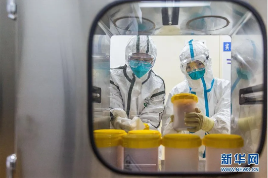 ▲ 2月25日,工作人員在中國疾病預(yù)防控制中心傳染病預(yù)防控制所P3實驗室傳遞窗口接收剛剛從浙江省疾控中心運抵的疫苗生產(chǎn)用新型冠狀病毒毒株。(來源:新華社)