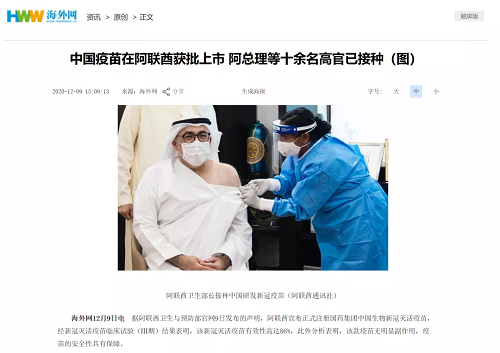 國藥新冠疫苗在阿聯(lián)酋獲批上市