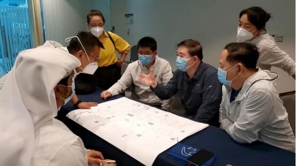 科研人員在阿聯(lián)酋與外方人員交流三期臨床試驗(yàn)