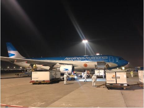 從去年4月中旬開始,中阿兩國就迅速搭建起一架特殊的“空中橋梁”——阿根廷政府批準其國營的阿根廷航空公司臨時開通直飛中國上海的運輸物資飛機航班。這一特殊的空中橋梁運轉(zhuǎn)數(shù)十次,從中國運回大量呼吸機、醫(yī)用口罩、防護服、檢測試劑等超過600噸的醫(yī)療物資。這其中既有中國政府的捐贈,也有阿根廷政府購買的物資。(總臺記者 冀藝 黃小龍)