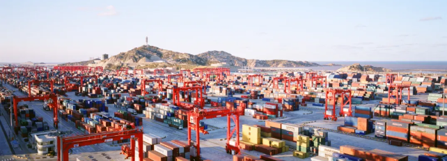 上港集團(tuán)建設(shè)運(yùn)營的全球最大的集裝箱碼頭——洋山港