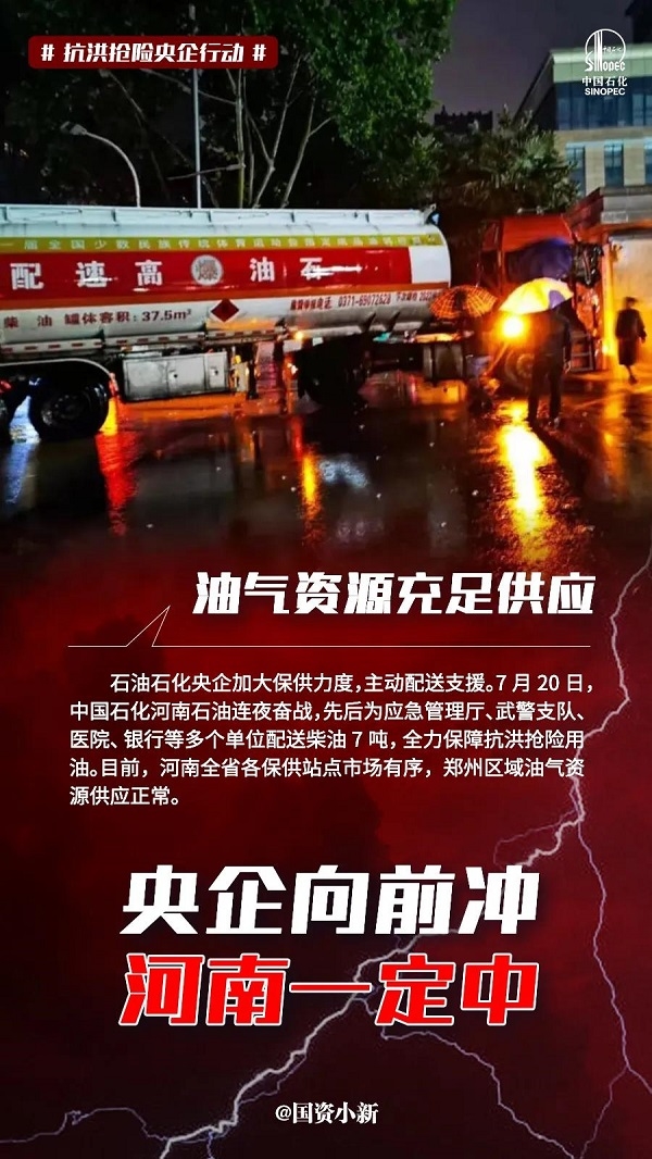 油氣資源充足供應(yīng)、現(xiàn)金捐贈防汛救災(zāi)