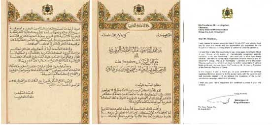 摩洛哥國(guó)王穆罕默德六世致國(guó)藥集團(tuán)董事長(zhǎng)劉敬楨先生的感謝信