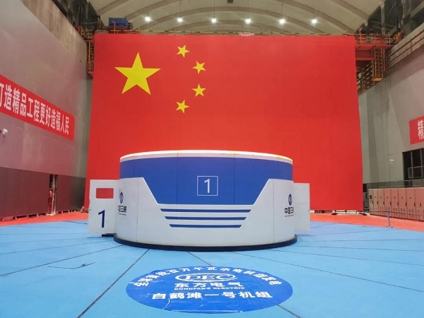 2021年6月28日,金沙江白鶴灘水電站首批機組安全準點投產(chǎn)發(fā)電,標志著我國大型水電工程建設(shè)完成從“中國制造”到“中國創(chuàng)造”的歷史性跨越。圖為東方電氣研制的白鶴灘水電站1號機組。