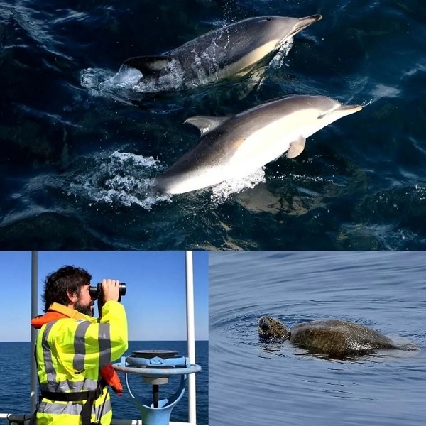 2021年8月4日,平靜的波斯灣水域,兩只海豚在海面劃出美麗的弧線,一只海龜也從海里探出頭來。不遠處中國石油東方物探隊的員工在靜靜“守護”著這些海洋精靈。為了最大限度降低地震勘探對海洋生物造成的干擾,勘探隊在施工中自覺打撈和收集海上漂浮物,為海洋生物的正常生活創(chuàng)造了良好的生態(tài)環(huán)境。