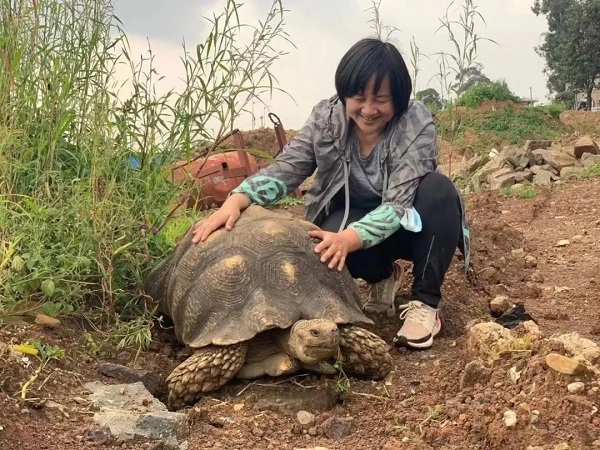 圖為城建院設計人員在施工現(xiàn)場悉心照看蘇卡達象龜