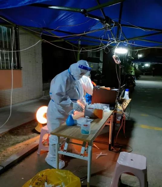 西安全市小區(qū)、單位實(shí)行封閉式管理的消息剛出來時(shí),通用技術(shù)國中康健西安電力醫(yī)院市級防控應(yīng)急核酸采樣隊(duì)員張穎接到醫(yī)院緊急集結(jié)令,火速出門攔下了一輛要下班的出租車。當(dāng)聽說目的地是去醫(yī)院支援抗疫時(shí),司機(jī)質(zhì)樸地說:“別人這會(huì)兒都往家跑,你們拋開家人向最危險(xiǎn)的地方去,向你們致敬,我為醫(yī)護(hù)免單!”同一時(shí)間,通用技術(shù)集團(tuán)所屬醫(yī)療機(jī)構(gòu)多支醫(yī)療隊(duì)的醫(yī)護(hù)人員從四面八方趕回到醫(yī)院,3000余名醫(yī)護(hù)人員,趕赴西安及周邊地區(qū)開展核酸采樣。