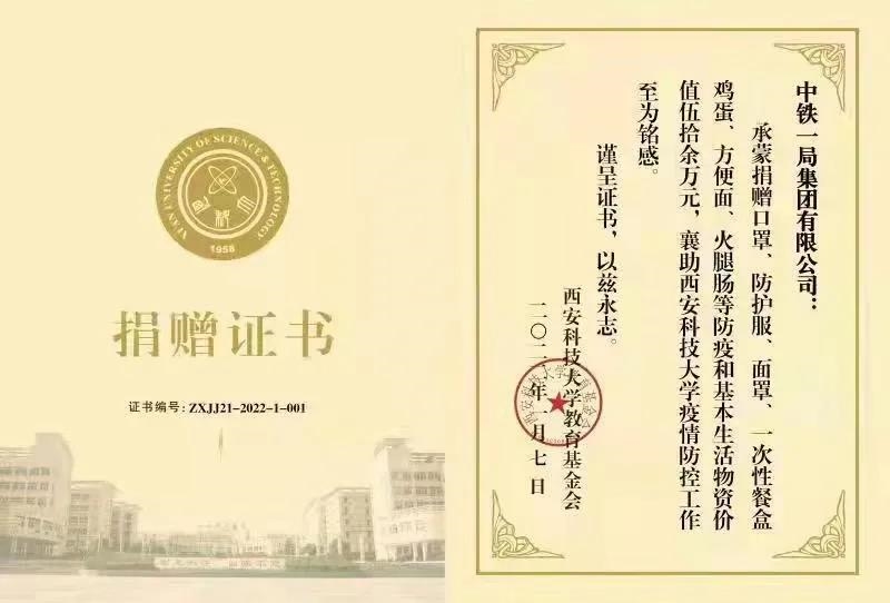1月8日,中國中鐵支援西安科技大學(xué)第四批物資送達(dá),包括一次性餐盒97500個(gè),20000斤大米、面粉等,解決了學(xué)校疫情期間物資需求燃眉之急。西安科技大學(xué)在給中鐵一局的感謝信中表示:“你們不僅僅是為學(xué)校開展疫情防控工作提供了物質(zhì)支持,更是將溫暖的愛心和強(qiáng)大的信心播種在全校師生的心田。”