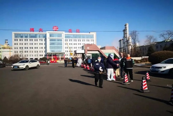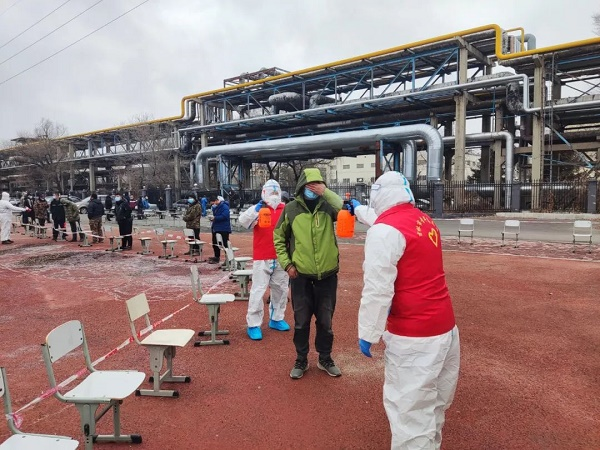 國投集團旗下博大生化組織員工以及周邊群眾進行核酸檢測。